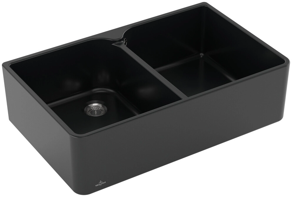 inklusive Ablaufgarnitur mit Handbetätigung, aus Keramik, 795 x 500 mm, Pure Black