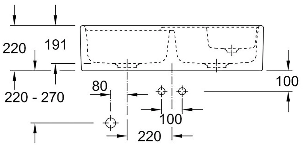 2 vorgebohrte Hahnlöcher