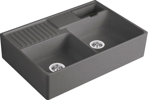 Spülstein in CeramicPlus-Qualität komplett mit Resteschale glasklar,