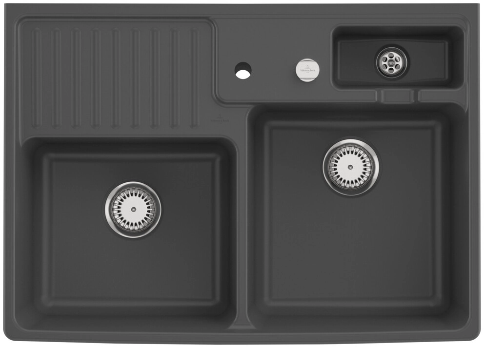 inklusive Ablaufgarnitur mit Excenterbetätigung, inklusive Resteschale, Befestigungsset, aus Keramik, 895 x 630 mm, Graphite