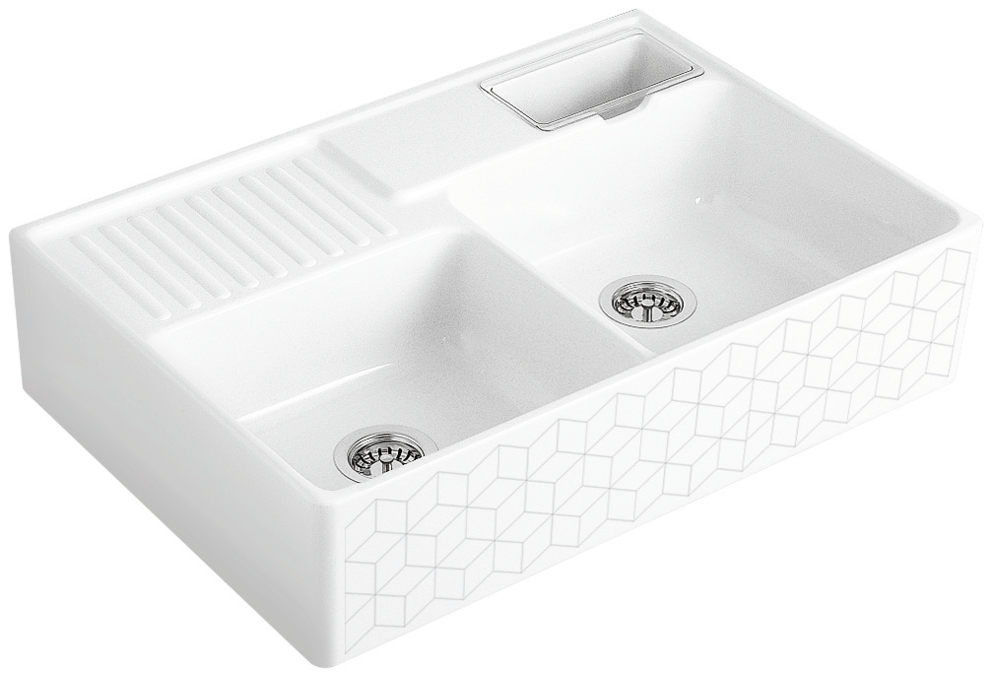 Spülstein in CeramicPlus-Qualität komplett mit Resteschale glasklar,