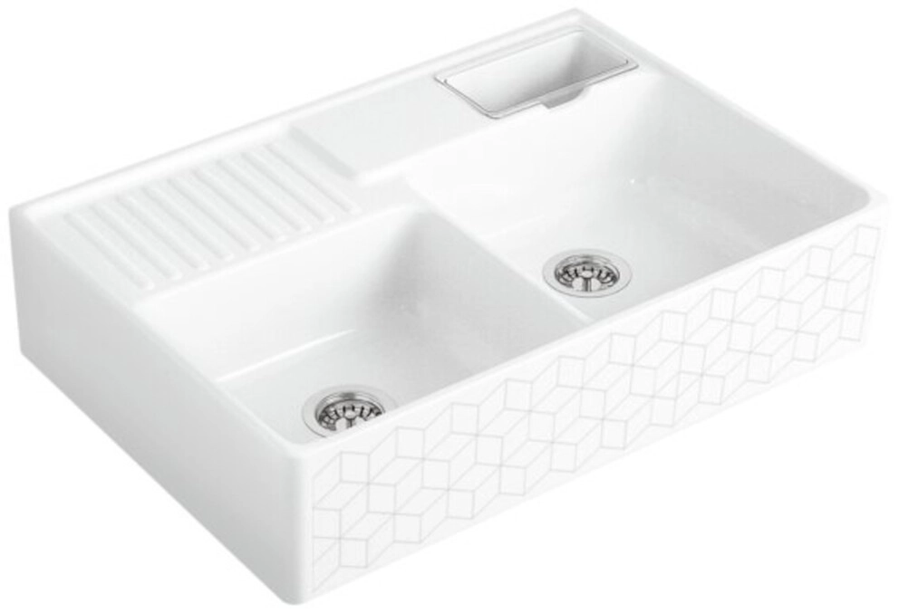 inklusive Ablaufgarnitur mit Excenterbetätigung, inklusive Resteschale, Befestigungsset, aus Keramik, 895 x 630 mm, Mosaïque