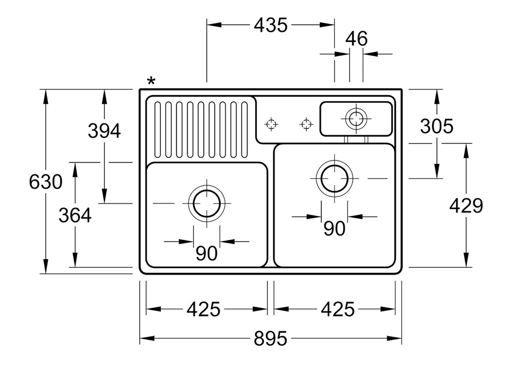 Mindest-Unterschrankbreite: 90 cm