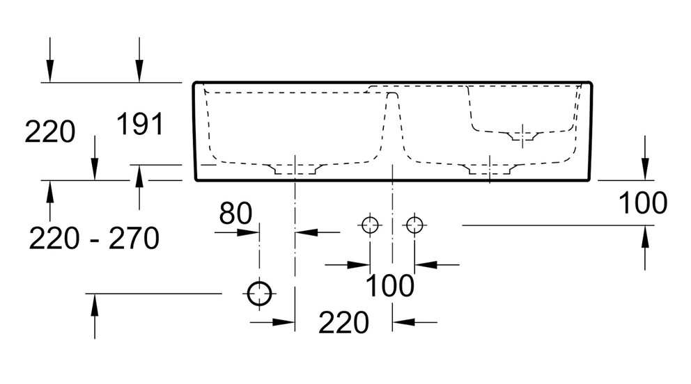 2 vorgebohrte Hahnlöcher