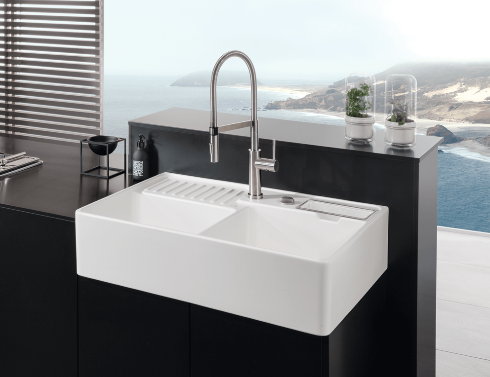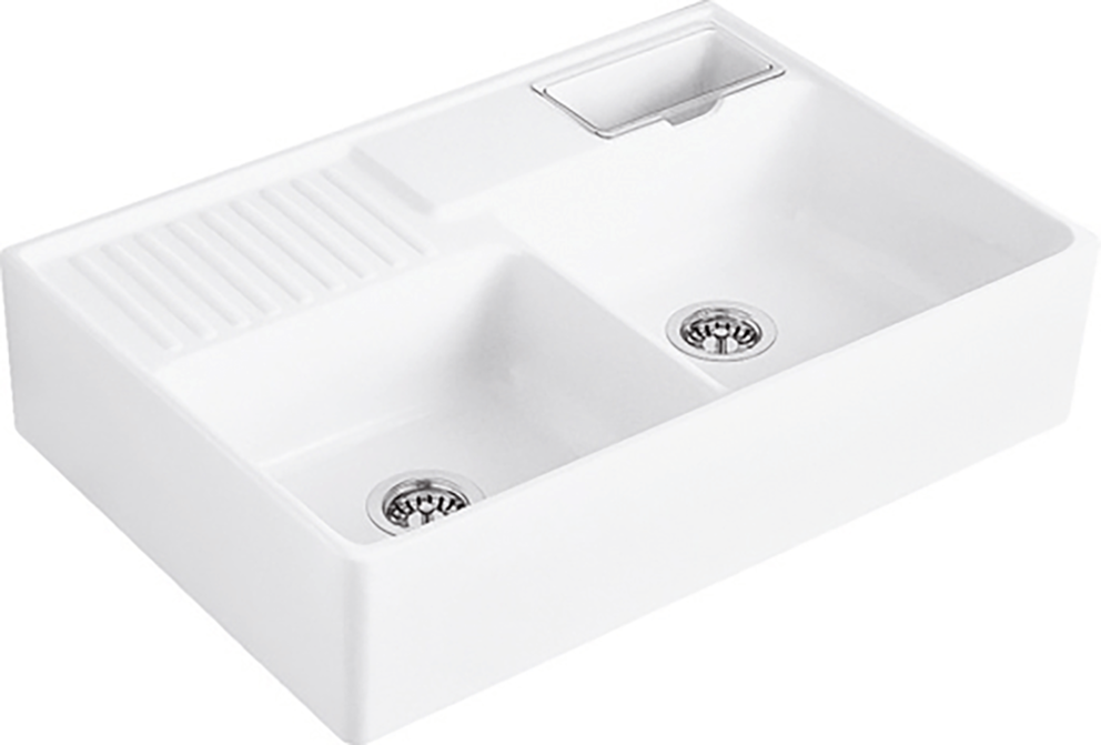 Spülstein in CeramicPlus-Qualität komplett mit Resteschale glasklar,