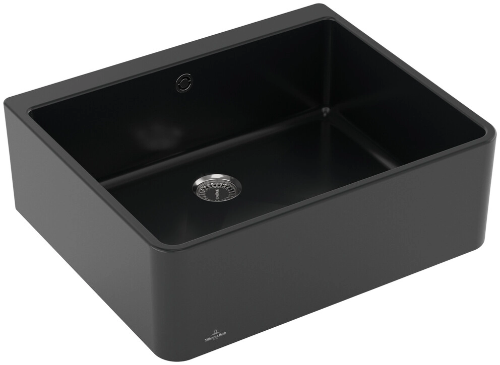 inklusive Ablaufgarnitur mit Handbetätigung, aus Keramik, 595 x 500 mm, Pure Black