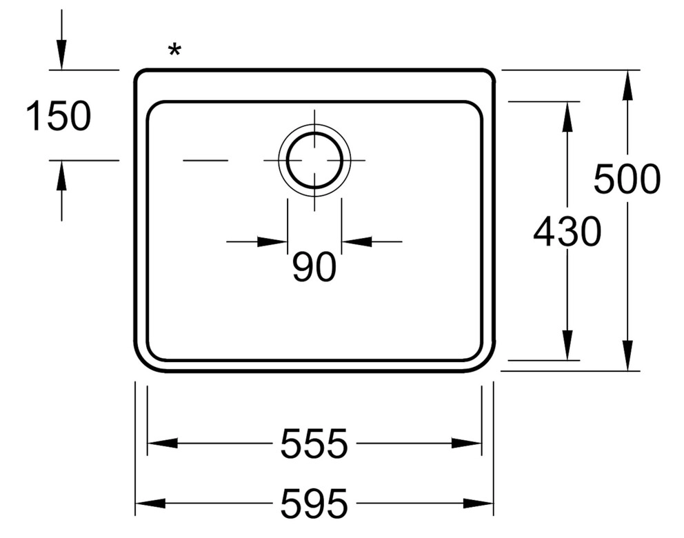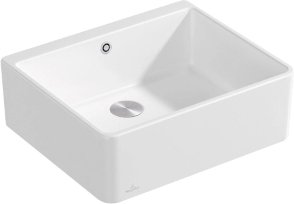 inklusive Ablaufgarnitur mit Excenterbetätigung, aus Keramik, 595 x 500 mm, Stone White