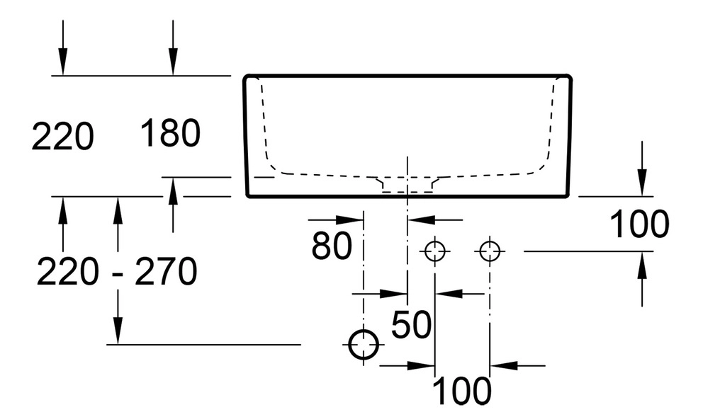 3 vorgebohrte Hahnlöcher.