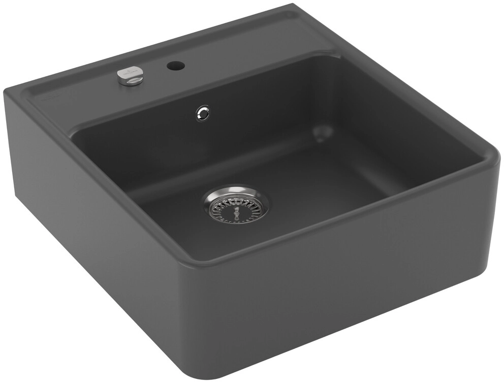 inklusive Ablaufgarnitur mit Excenterbetätigung, Befestigungsset, aus Keramik, 595 x 500 mm,Graphite