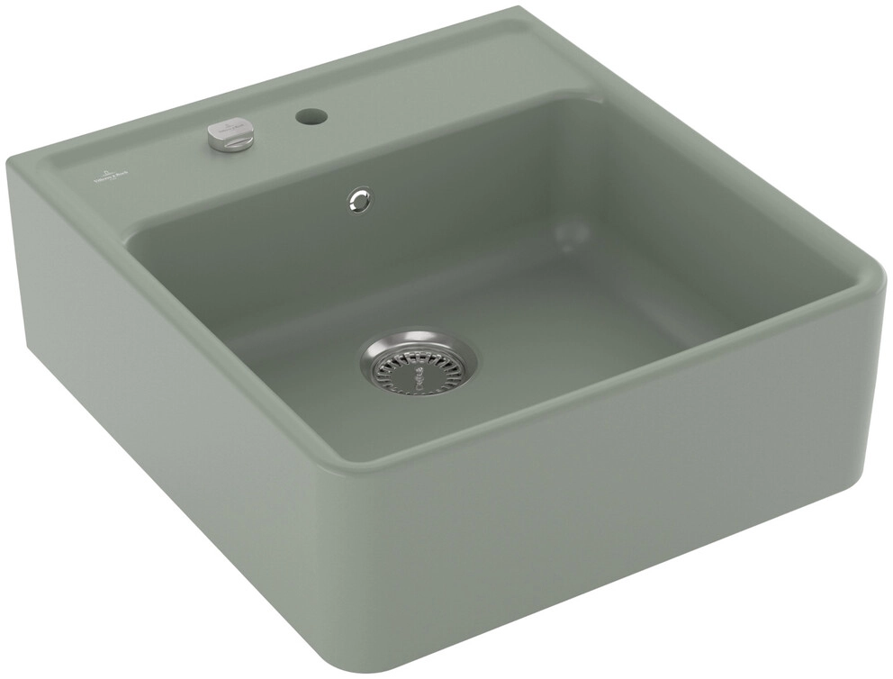 inklusive Ablaufgarnitur mit Excenterbetätigung, Befestigungsset, aus Keramik, 595 x 500 mm,Morning Green