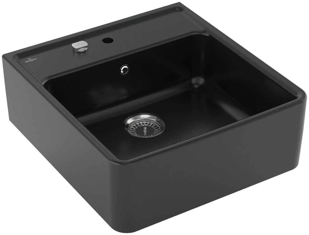 inklusive Ablaufgarnitur mit Excenterbetätigung, Befestigungsset, aus Keramik, 595 x 500 mm,Pure Black