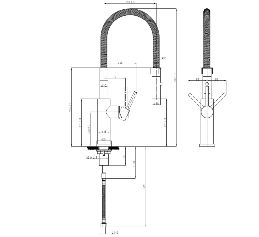• Flexible Anschlussschläuche, Länge 600 mm