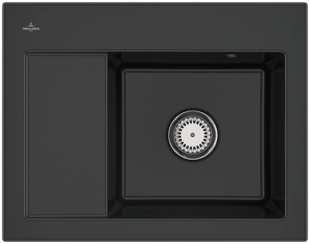 inklusive Ablaufgarnitur mit Handbetätigung, aus Keramik, 650 x 510 mm, Pure Black, CeramicPlus