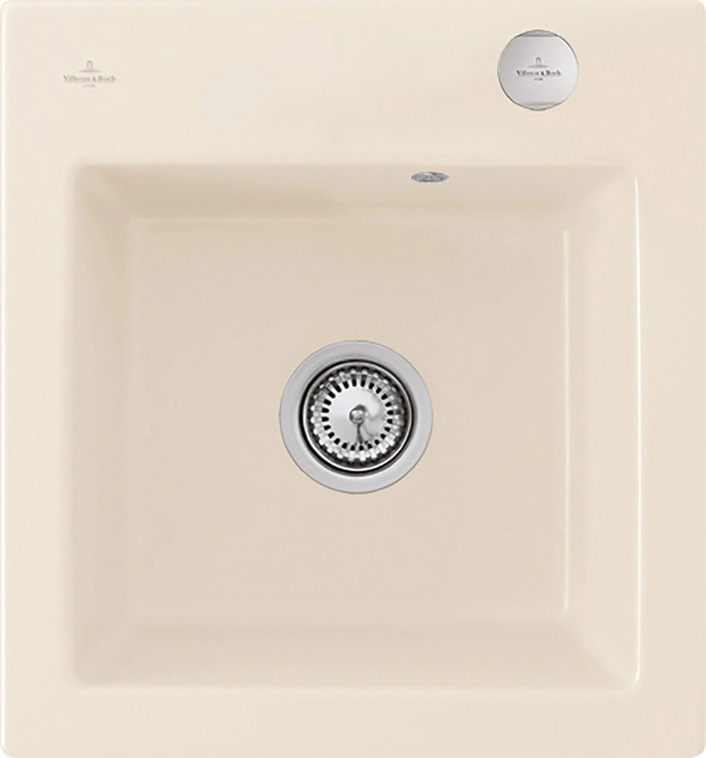 inklusive Ablaufgarnitur mit Excenterbetätigung, aus Keramik, 440 x 475 mm, Crema, CeramicPlus