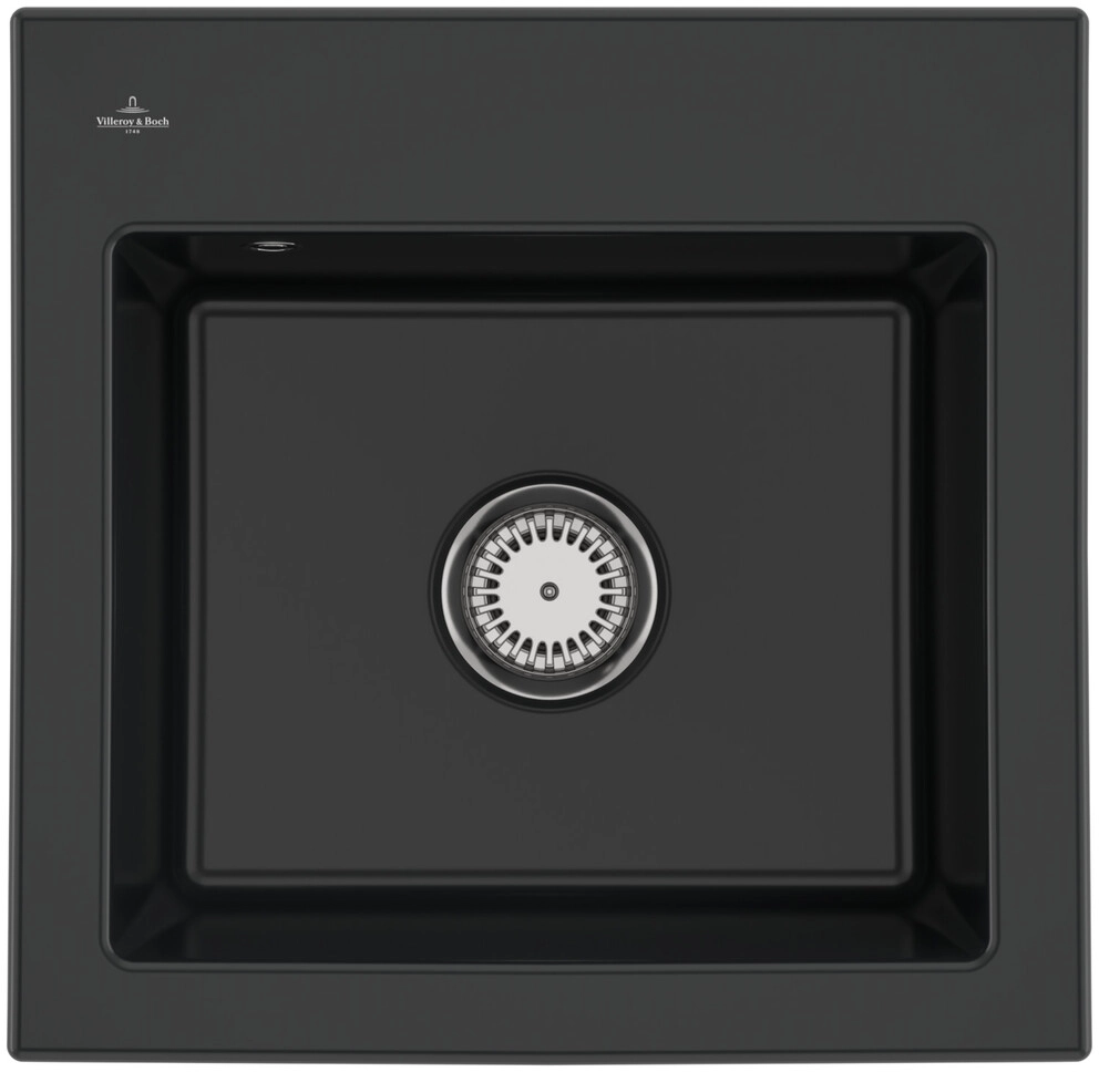 inklusive Ablaufgarnitur mit Handbetätigung, aus Keramik, 525 x 510 mm, Pure Black, CeramicPlus