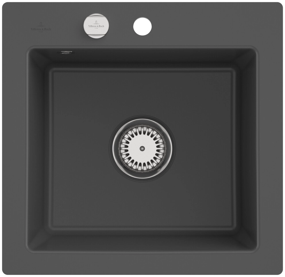 inklusive Ablaufgarnitur mit Excenterbetätigung, aus Keramik, 490 x 475 mm, Graphite, CeramicPlus