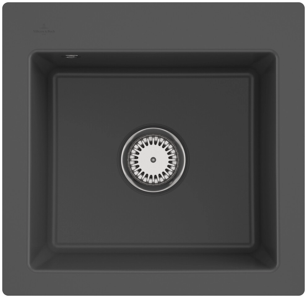 inklusive Ablaufgarnitur mit Handbetätigung, aus Keramik, 490 x 475 mm, Graphite , CeramicPlus