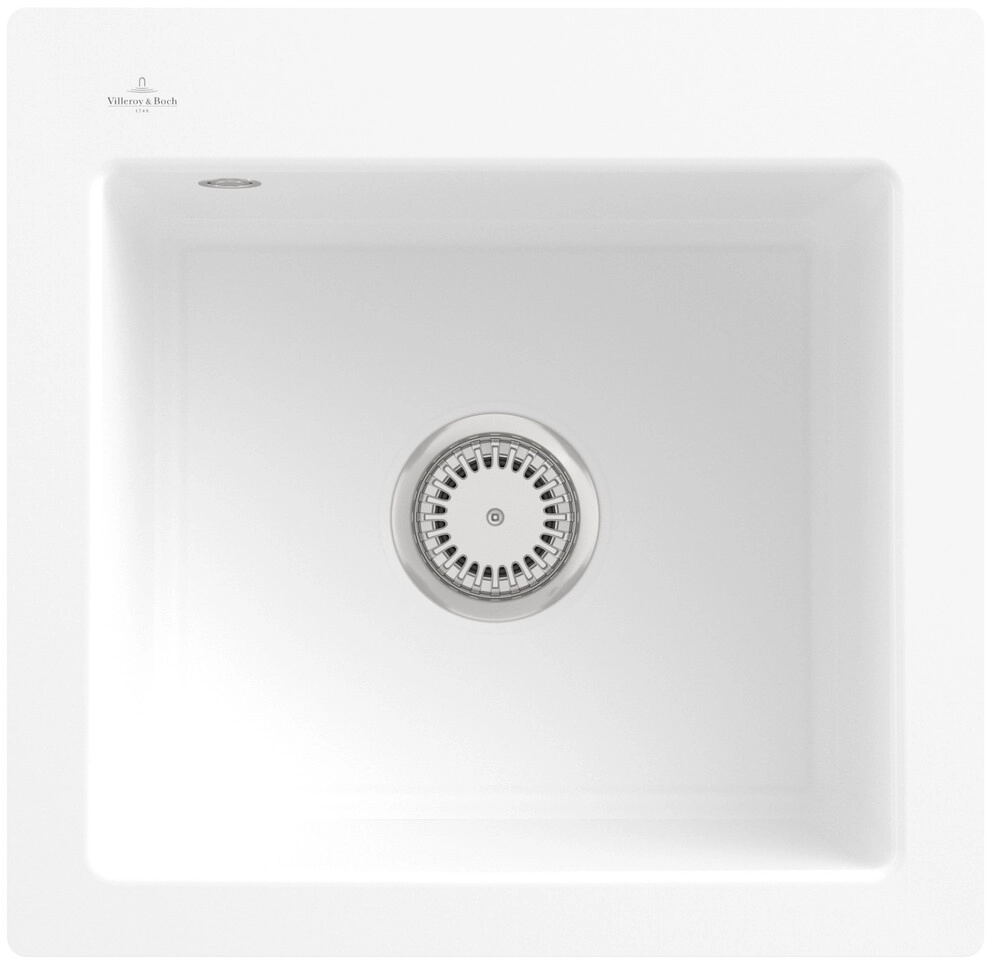 inklusive Ablaufgarnitur mit Handbetätigung, aus Keramik, 490 x 475 mm, Stone White, CeramicPlus