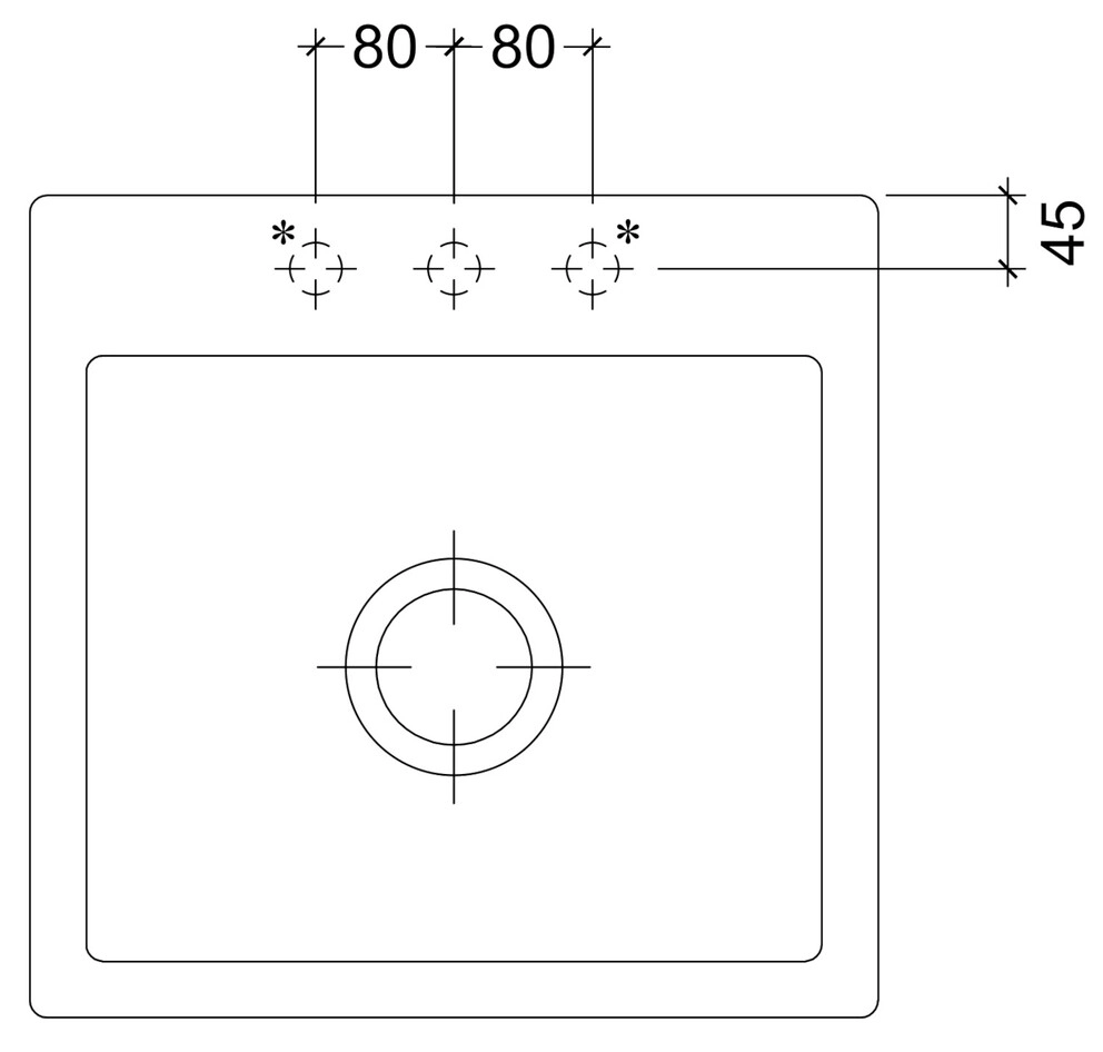 durchgebohrt werden soll. Artikelnummer Hahnloch = 69999999.