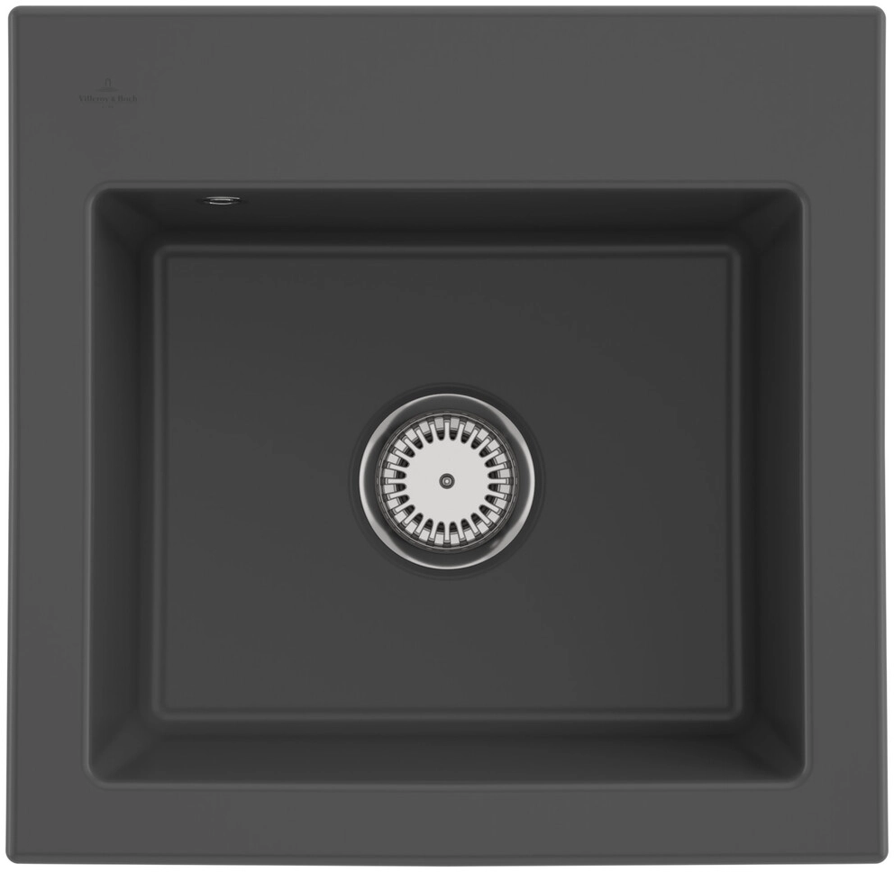 inklusive Ablaufgarnitur mit Handbetätigung, aus Keramik, 525 x 510 mm, Graphite, CeramicPlus