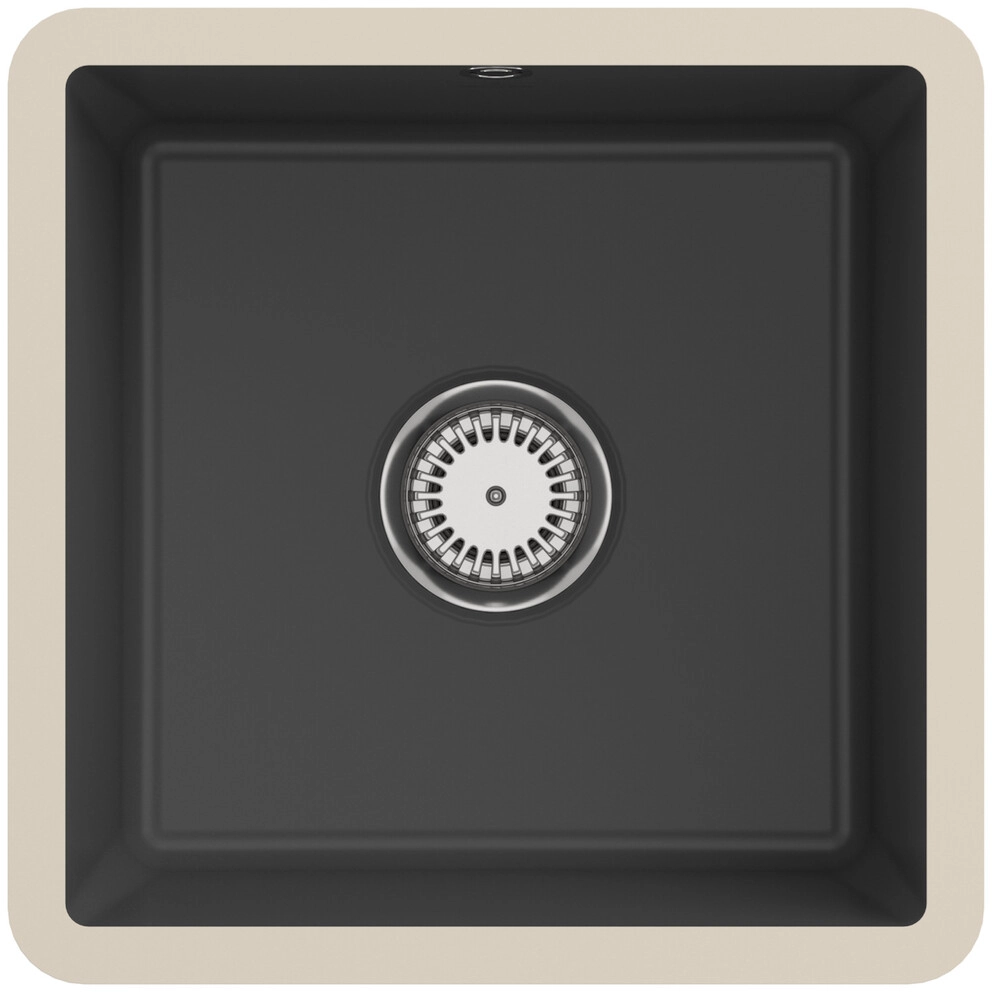 inklusive Ablaufgarnitur mit Excenterbetätigung, aus Keramik, 440 x 440 mm, Graphite, CeramicPlus
