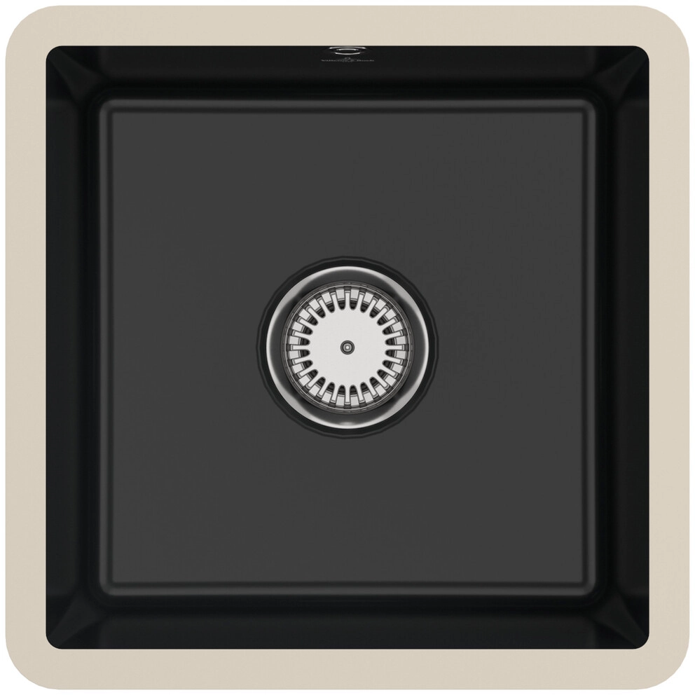 inklusive Ablaufgarnitur mit Handbetätigung, aus Keramik, 440 x 440 mm, Pure Black, CeramicPlus