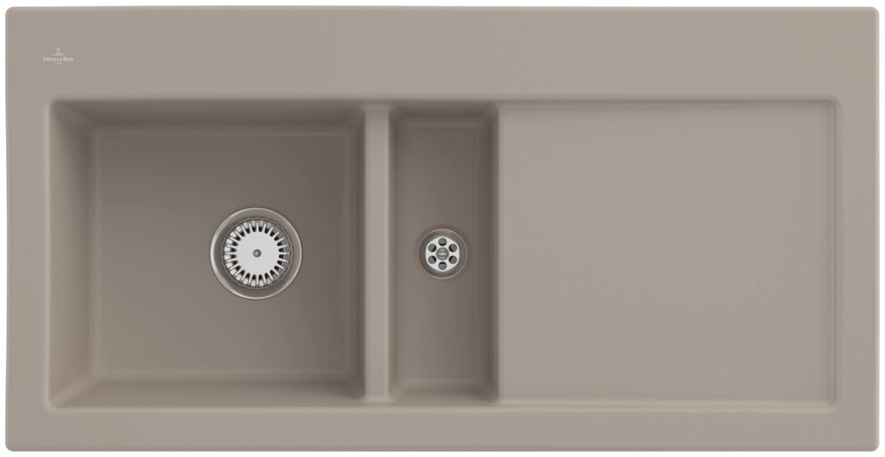 inklusive Ablaufgarnitur mit Handbetätigung, aus Keramik, 1000 x 510 mm, Almond, CeramicPlus