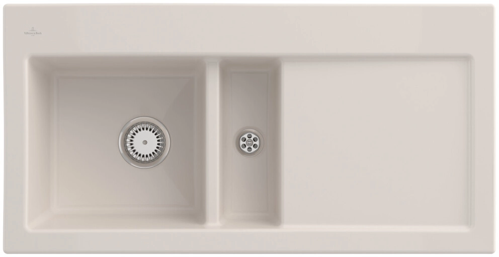 inklusive Ablaufgarnitur mit Handbetätigung, aus Keramik, 1000 x 510 mm, Crema, CeramicPlus