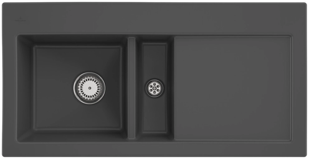 inklusive Ablaufgarnitur mit Handbetätigung, aus Keramik, 1000 x 510 mm, Graphite, CeramicPlus