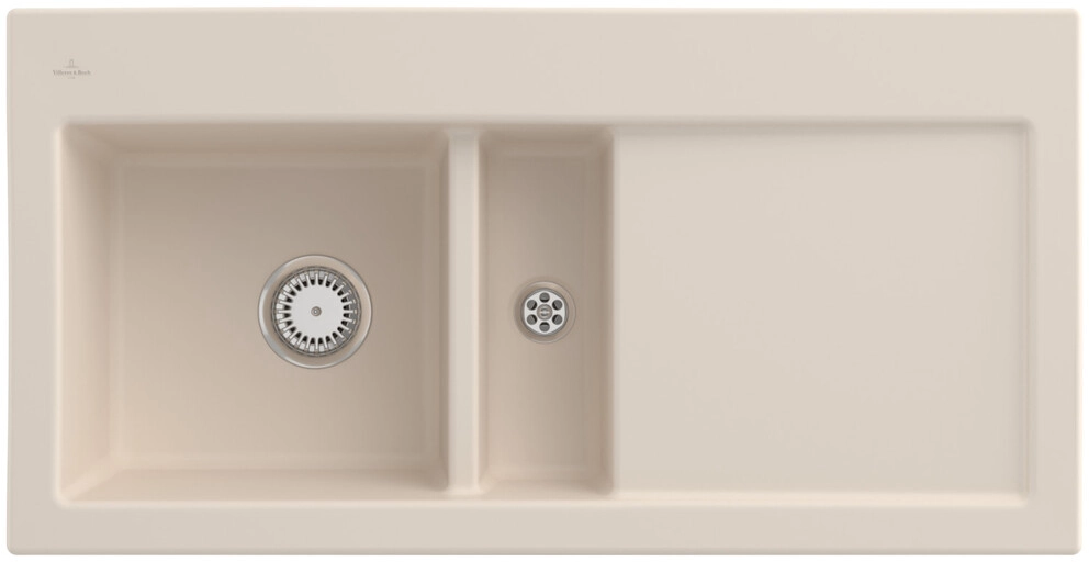 inklusive Ablaufgarnitur mit Handbetätigung, aus Keramik, 1000 x 510 mm, Ivory, CeramicPlus