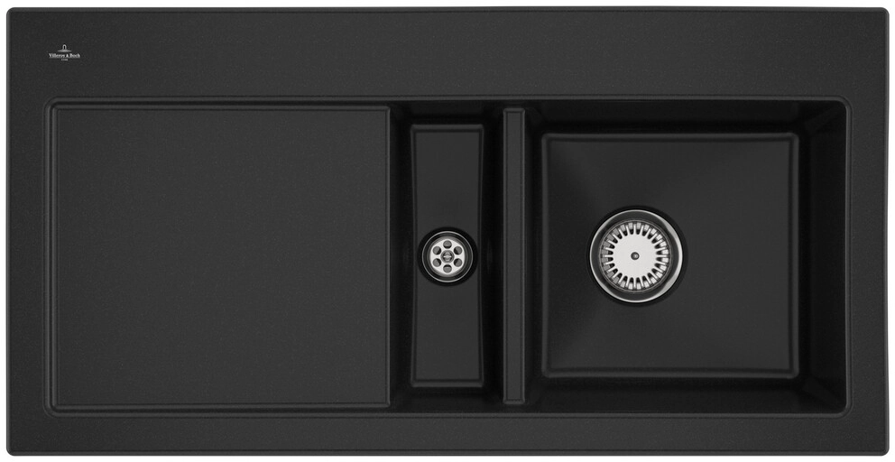 inklusive Ablaufgarnitur mit Handbetätigung, aus Keramik, 1000 x 510 mm, Chromite, CeramicPlus