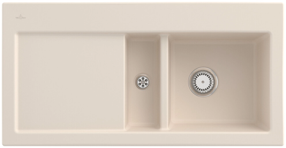inklusive Ablaufgarnitur mit Handbetätigung, aus Keramik, 1000 x 510 mm, Ivory, CeramicPlus