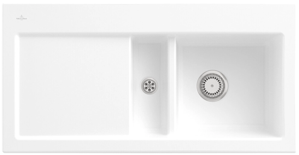 inklusive Ablaufgarnitur mit Handbetätigung, aus Keramik, 1000 x 510 mm, Stone White, CeramicPlus