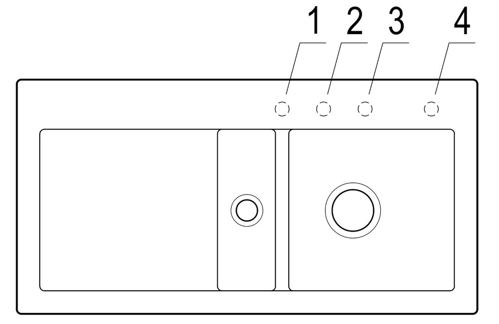 Bitte geben Sie bei der Bestellung die Nummer des Hahnlochs an (siehe Zeichnung), welches im Werk