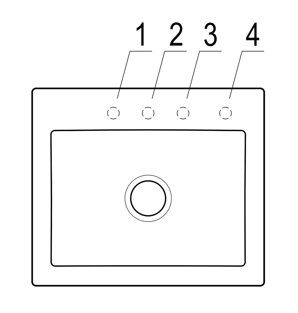 Bitte geben Sie bei der Bestellung die Nummer des Hahnlochs an (siehe Zeichnung), welches im Werk durchgebohrt werden soll. Artikelnummer Hahnloch = 69999999