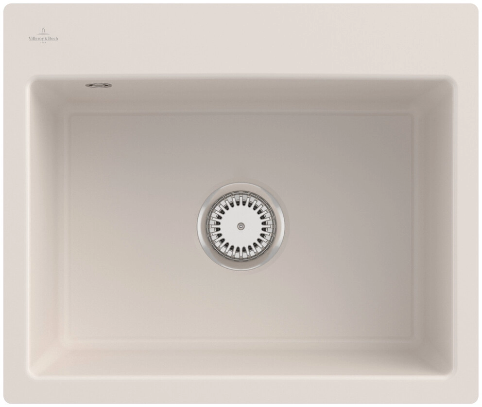 inklusive Ablaufgarnitur mit Handbetätigung, aus Keramik, 565 x 475 mm, Crema, CeramicPlus