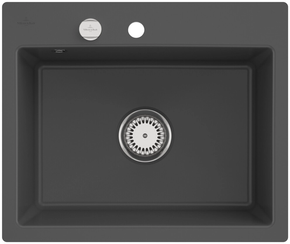 inklusive Ablaufgarnitur mit Excenterbetätigung, aus Keramik, 565 x 475 mm, Graphite, CeramicPlus