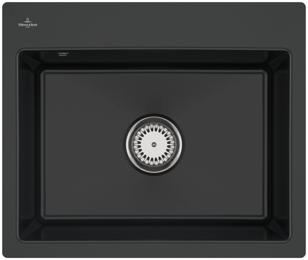 inklusive Ablaufgarnitur mit Handbetätigung, aus Keramik, 565 x 475 mm, Pure Black, CeramicPlus