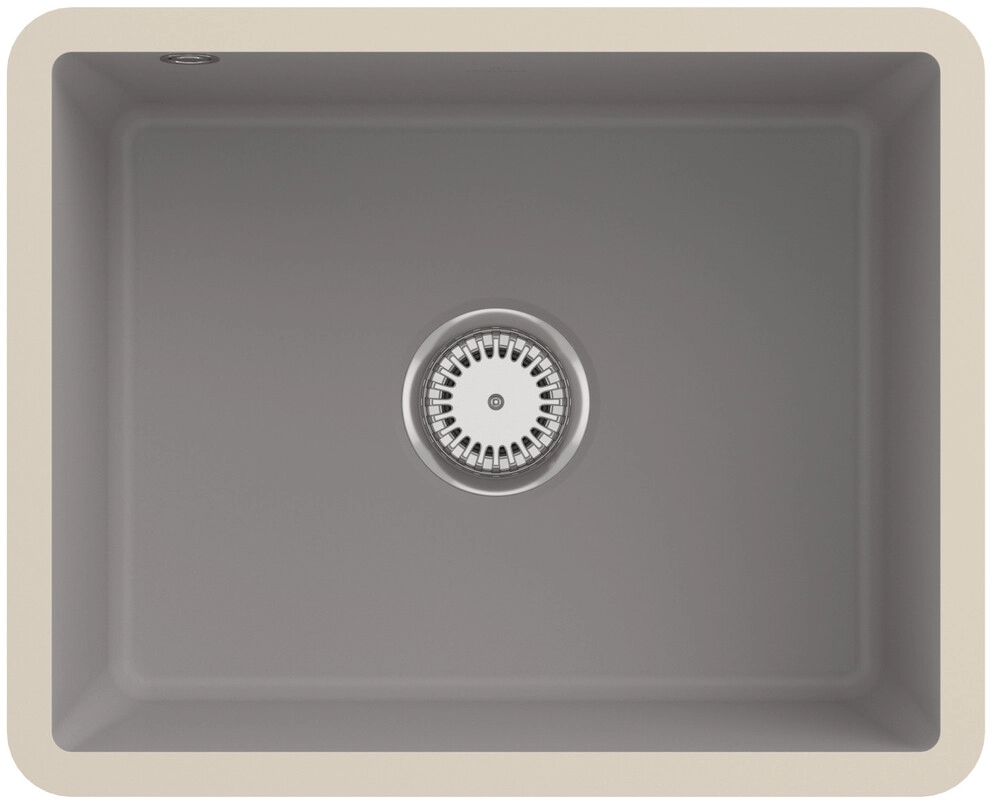 inklusive Ablaufgarnitur mit Handbetätigung, aus Keramik, 545 x 440 mm, Fossil, CeramicPlus