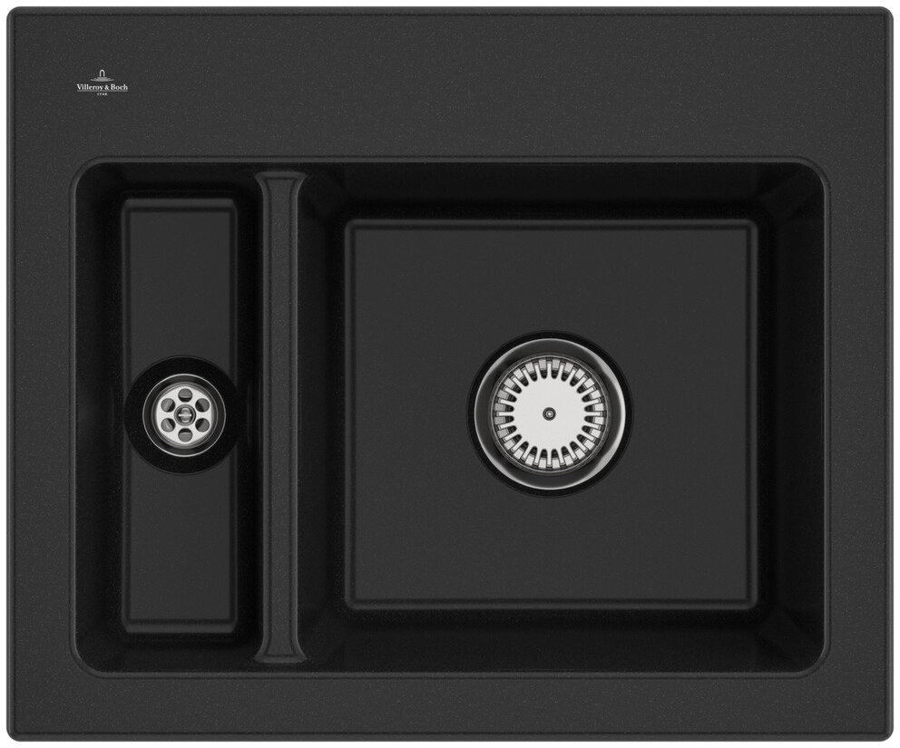 inklusive Ablaufgarnitur mit Handbetätigung, aus Keramik, 620 x 510 mm, Chromite, CeramicPlus