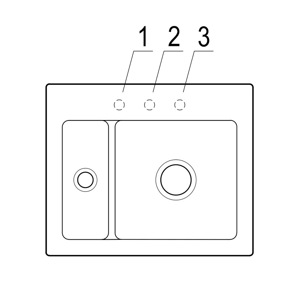 Bitte geben Sie bei der Bestellung die Nummer des Hahnlochs an (siehe Zeichnung), welches im Werk durchgebohrt werden soll. Artikelnummer Hahnloch = 69999999.
