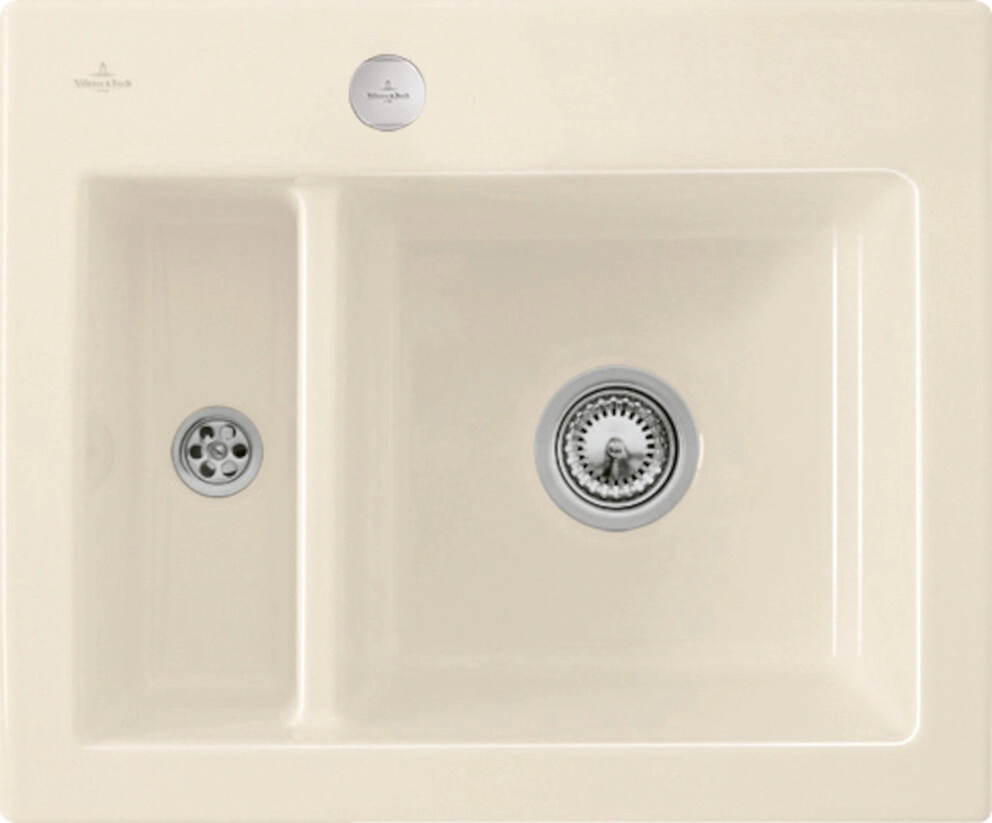 inklusive Ablaufgarnitur mit Excenterbetätigung, aus Keramik, 585 x 475 mm, Crema, CeramicPlus
