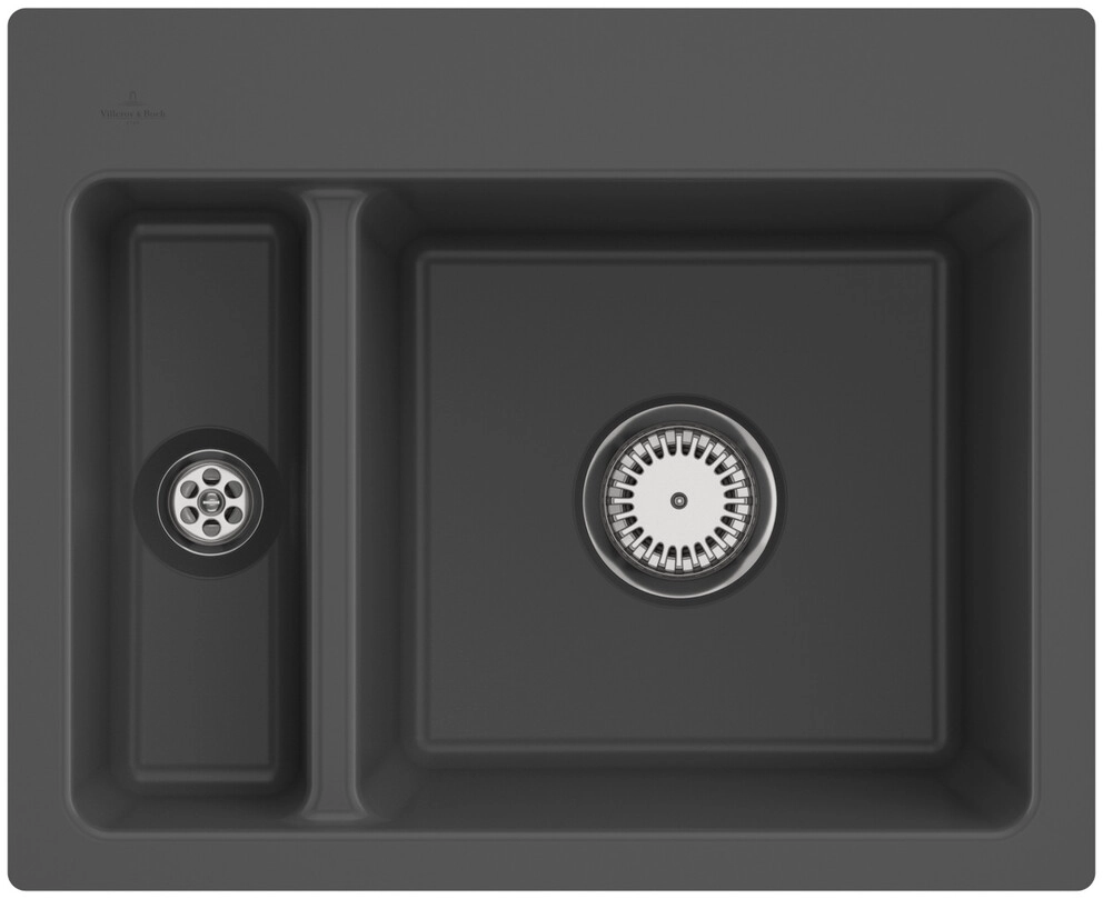 inklusive Ablaufgarnitur mit Handbetätigung, aus Keramik, 585 x 475 mm, Graphite, CeramicPlus