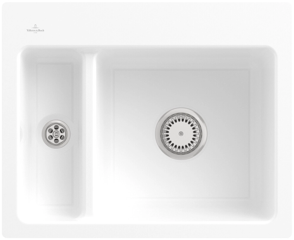 inklusive Ablaufgarnitur mit Handbetätigung, aus Keramik, 585 x 475 mm, Snow White, CeramicPlus