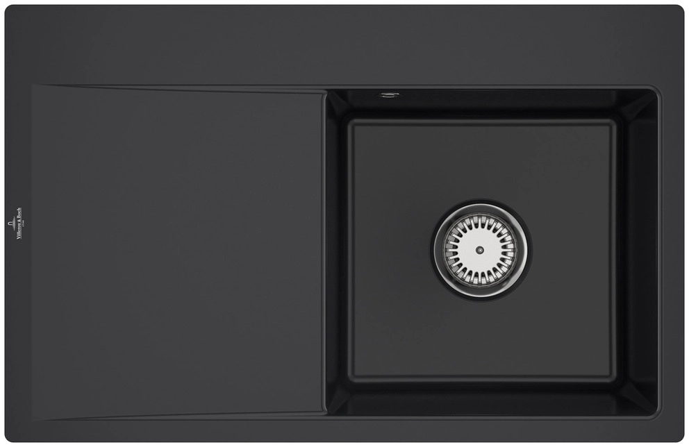 inklusive Ablaufgarnitur mit Handbetätigung, aus Keramik, 780 x 510 mm, Pure Black