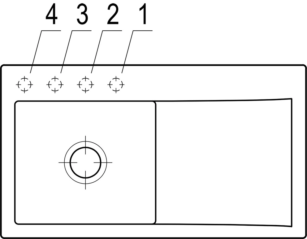 Bitte geben Sie bei der Bestellung die Nummer des Hahnlochs an (siehe Zeichnung),