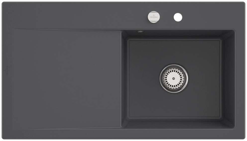inklusive Ablaufgarnitur mit Excenterbetätigung, aus Keramik, 900 x 510 mm, Graphite, CeramicPlus