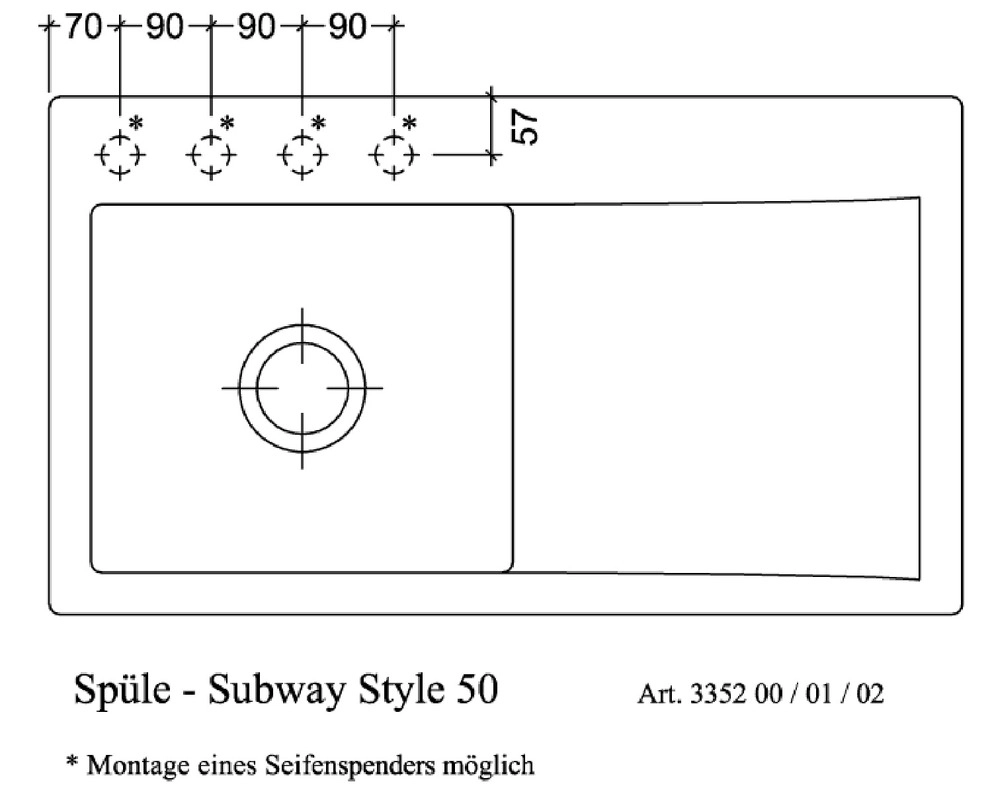 Subway Style 50 Einbauspüle, Becken links,