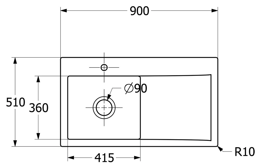 inklusive Ablaufgarnitur mit Excenterbetätigung, aus Keramik, 900 x 510 mm, Timber, CeramicPlus