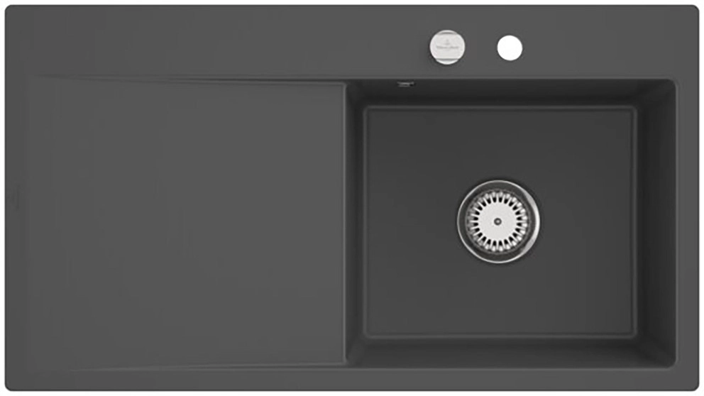 inklusive Ablaufgarnitur mit Excenterbetätigung, aus Keramik, 880 x 490 mm, Graphite, Becken rechts